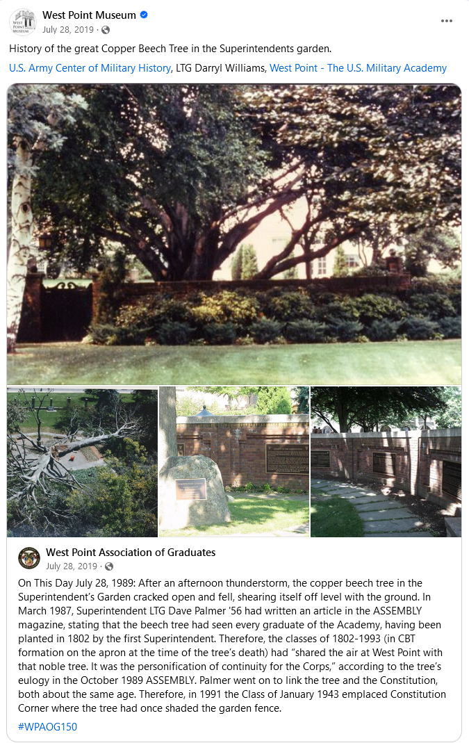 As regards the fallen copper beech tree, Ms. Voigtschild recalled that her Class' unofficial Class Motto is “We Killed the Tree ’93.” : )