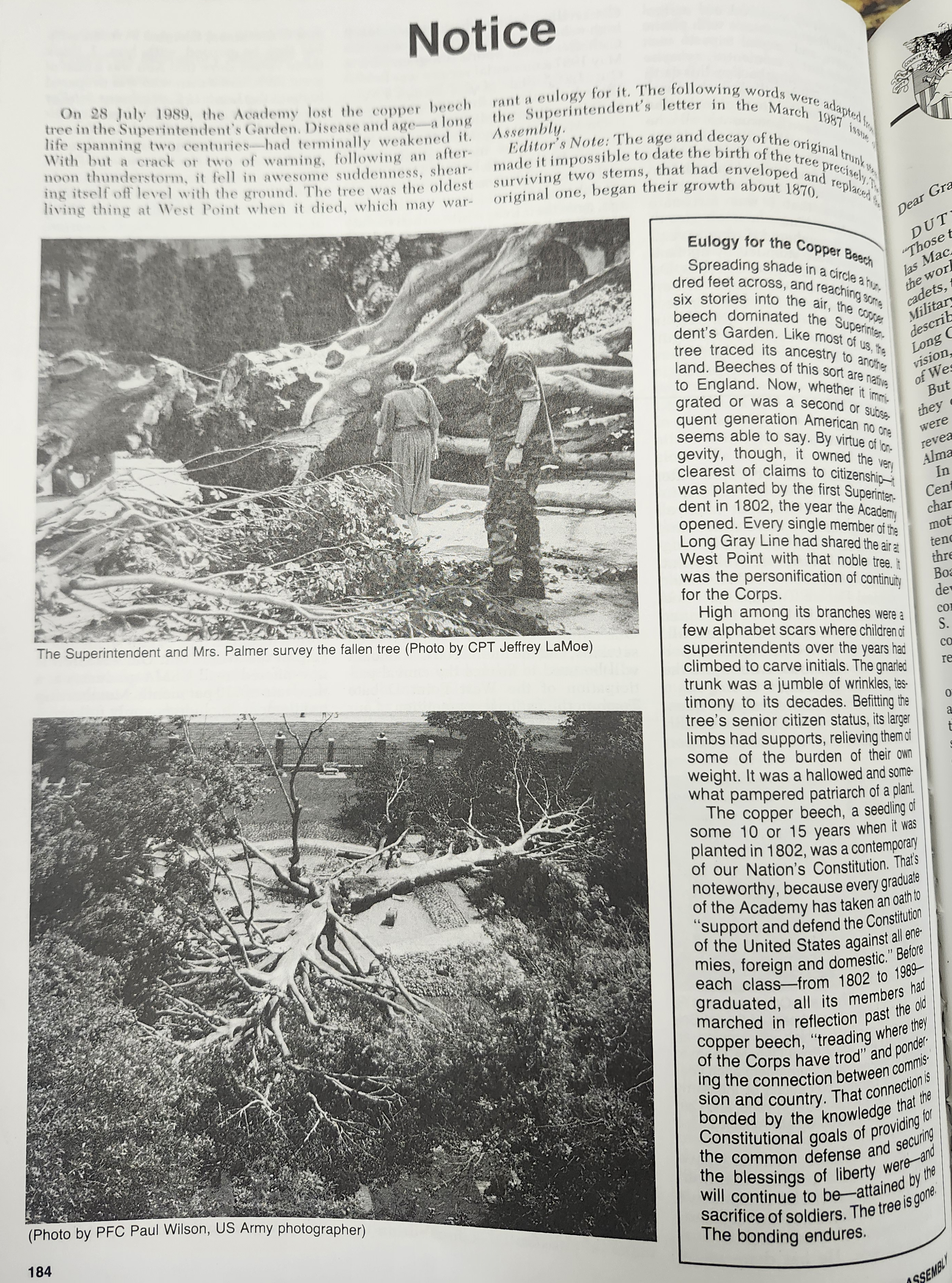 As regards the fallen copper beech tree, Ms. Voigtschild recalled that her Class' unofficial Class Motto is “We Killed the Tree ’93.” : )
